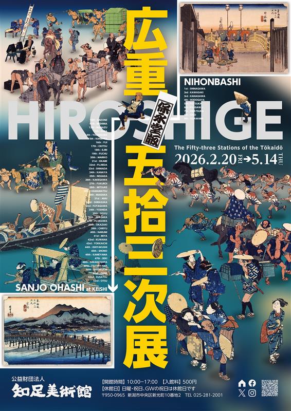 2026年(令和8年)は広重生誕230年にあたります。当館所蔵の作品は、広重の生きた時代に摺られた初版と言われているものです。冒頭に書きました“広重ブルー”の摺りの鮮やかさや紙質の美しさは、現代に残る奇跡とも言えるでしょう。江戸時代の旅情を感じながら、わずか55枚からなる広重が描いたかつての東海道を心ゆくまでお楽しみください。